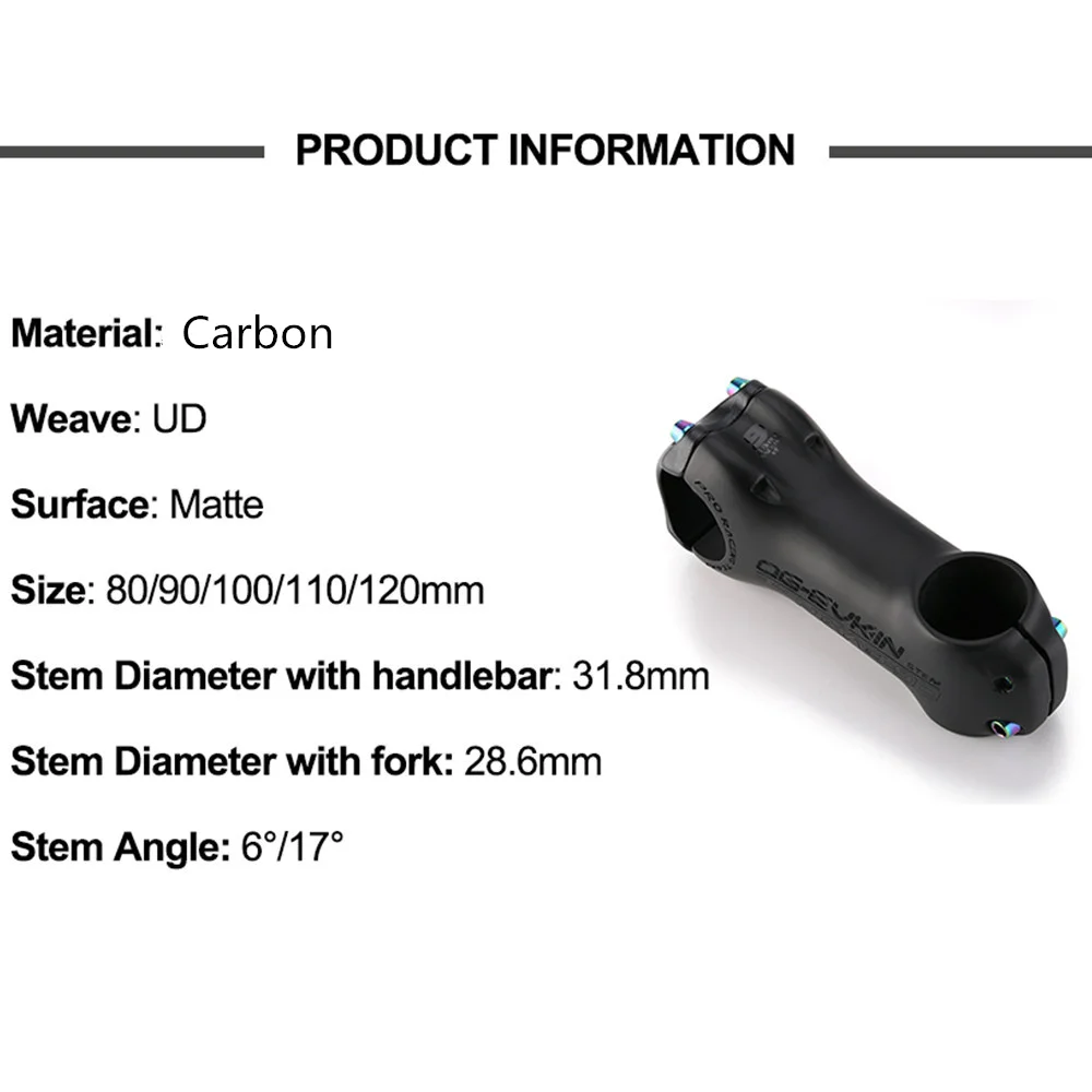 OG-EVKIN SM-004 T1000 Carbon MTB Bicycle Stem 6/17 Degree 31.8MM Carbon Road Bike Stem Positive and Negative Cycling Power Parts